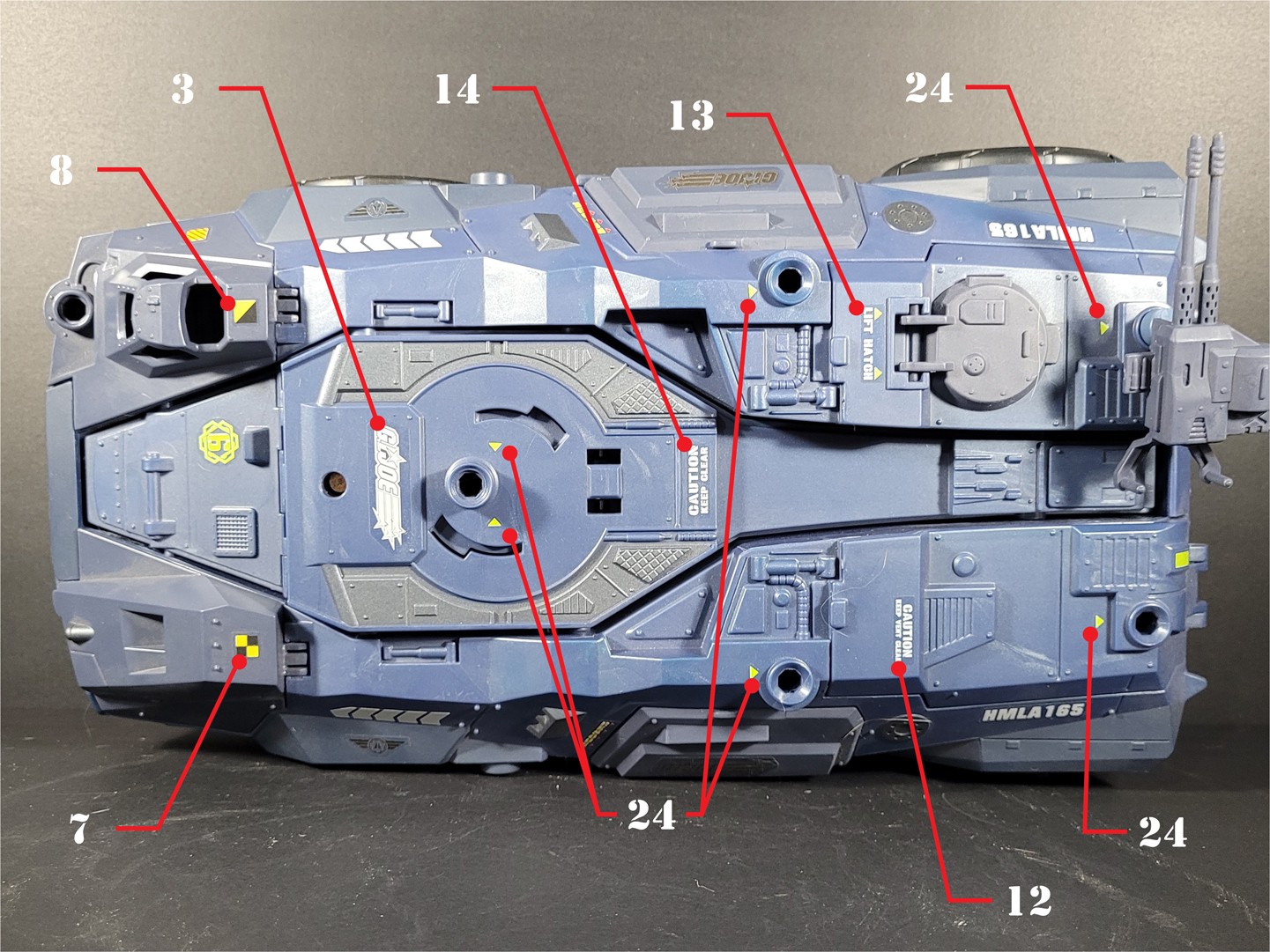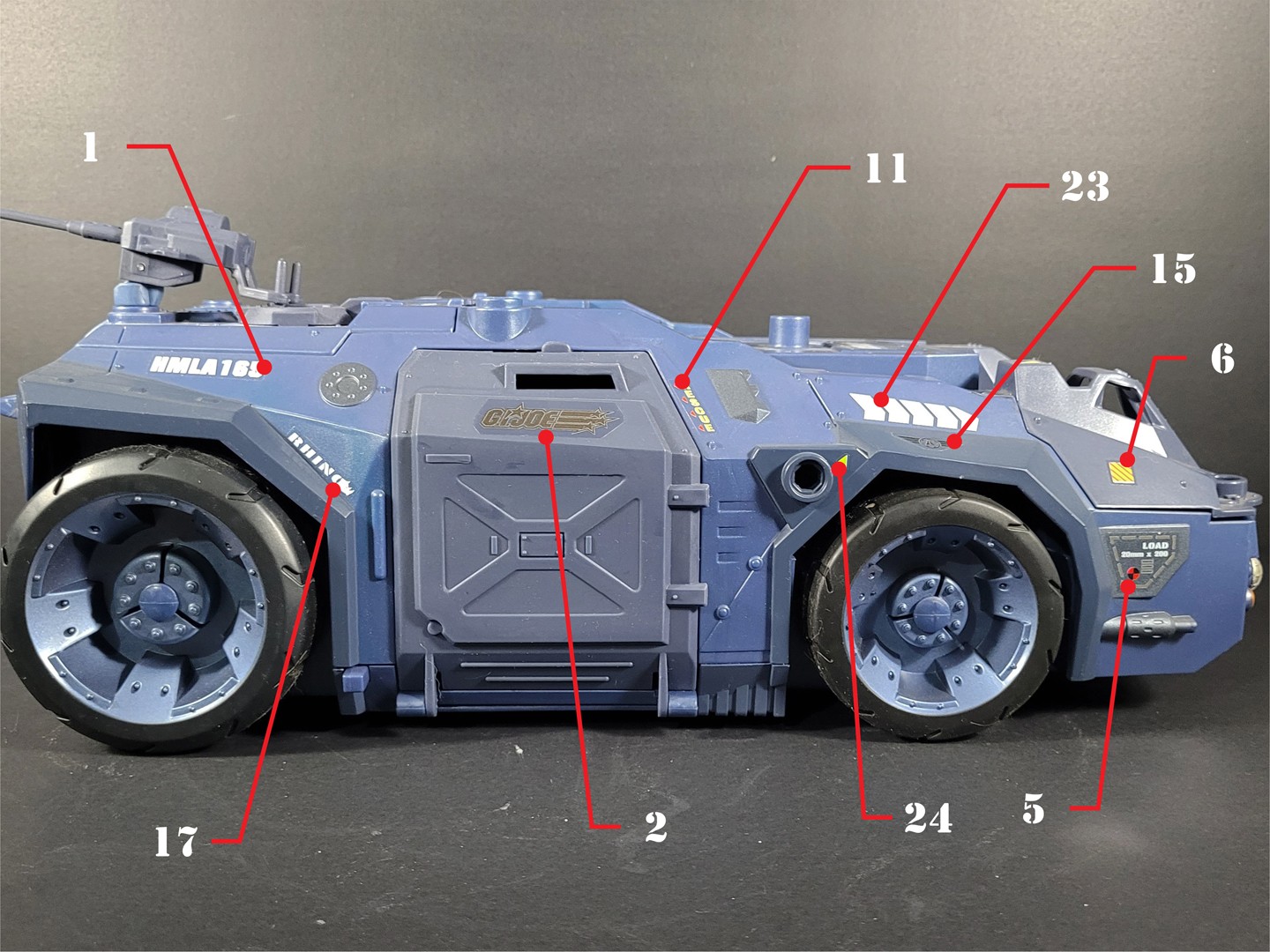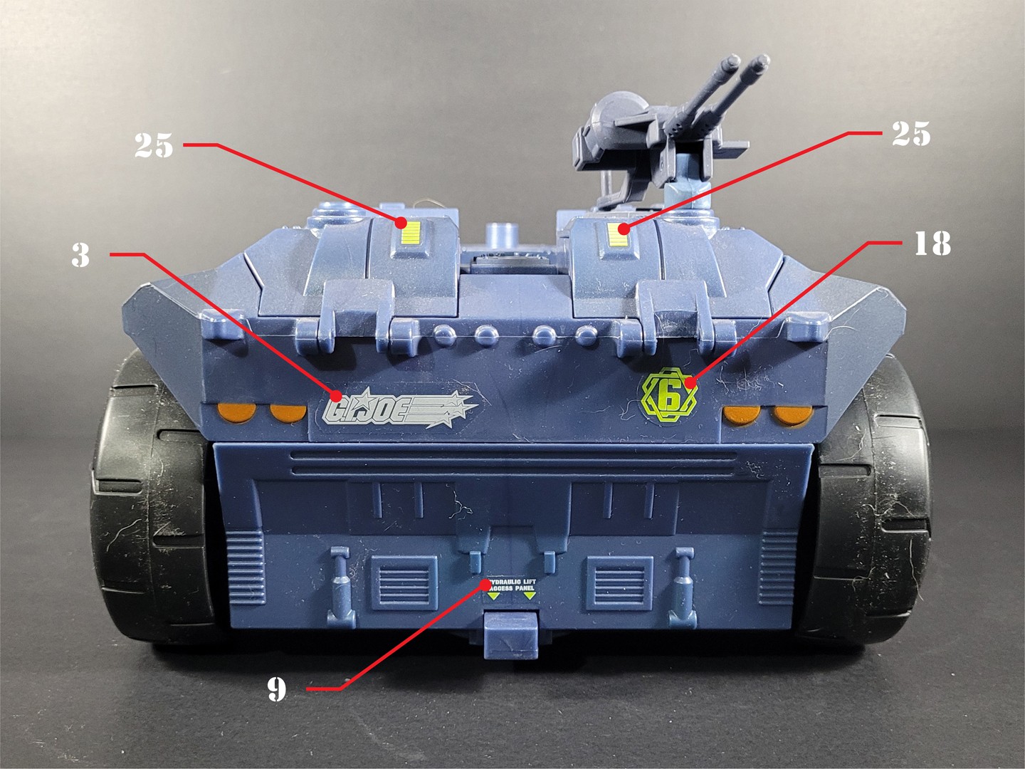 Reproduction set for the 2005 Direct to Consumer GI JOE RHINO vehicle. This set included 2 sheets split between the 2 units included in this vehicle. With all the original stickers reproduced, we've also included some alternate GI JOE Sigma-6 logos as well as other custom additions to enhance both vehicles.