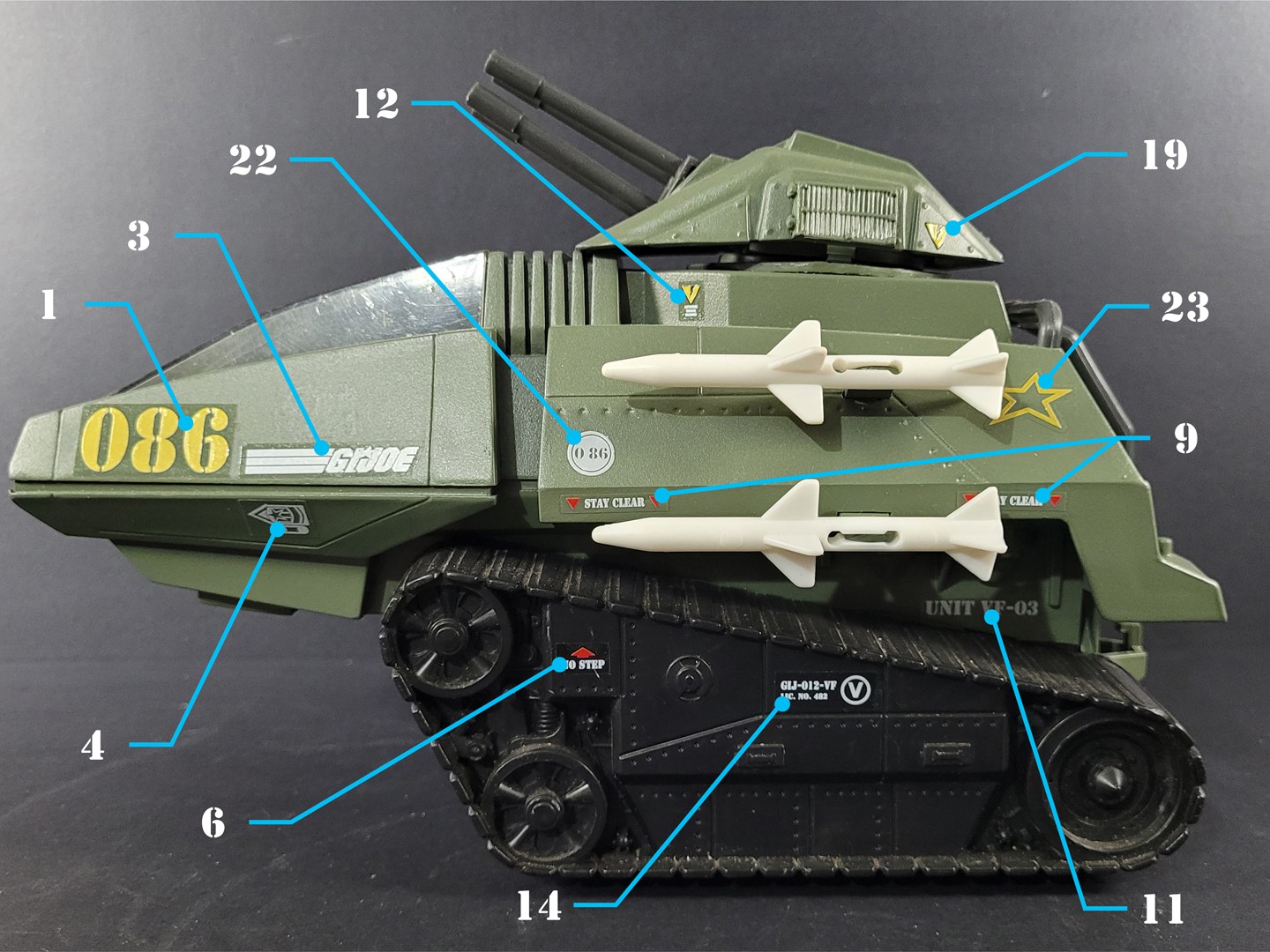 Inspired by the 2015 convention exclusive variant of the HISS tank. This set reproduces the original labels, and add a selection of numbers to help customize your vehicle to your liking.
