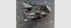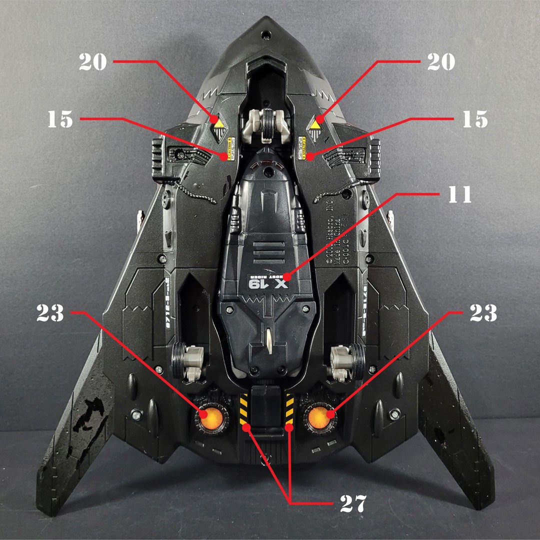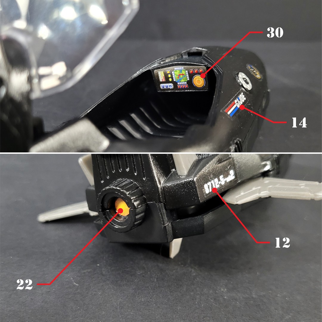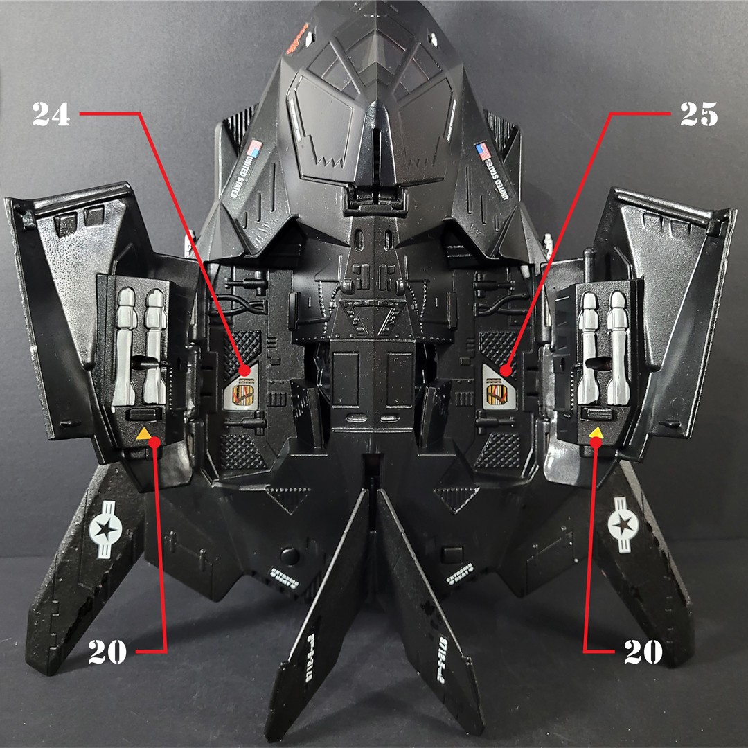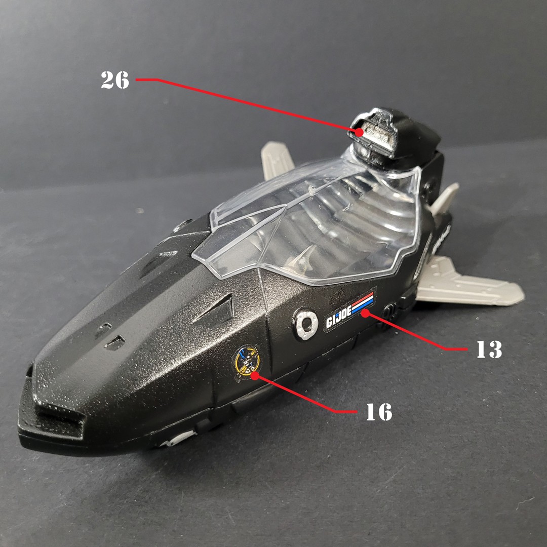 Custom set to convert the GI JOE Sky Sweeper stealth jet into an homage to the first GI JOE stealth jet: the Phantom X-19.