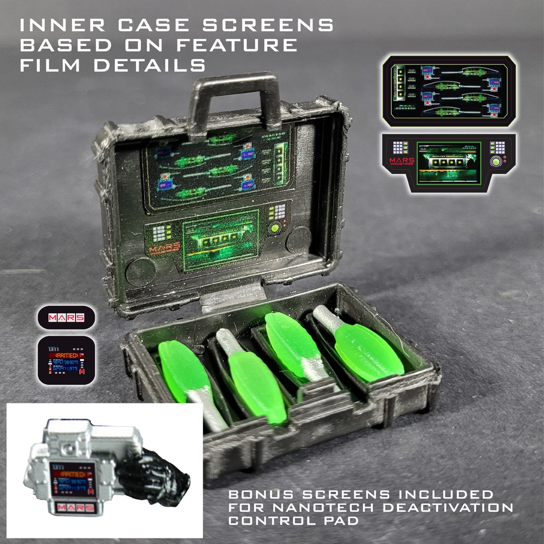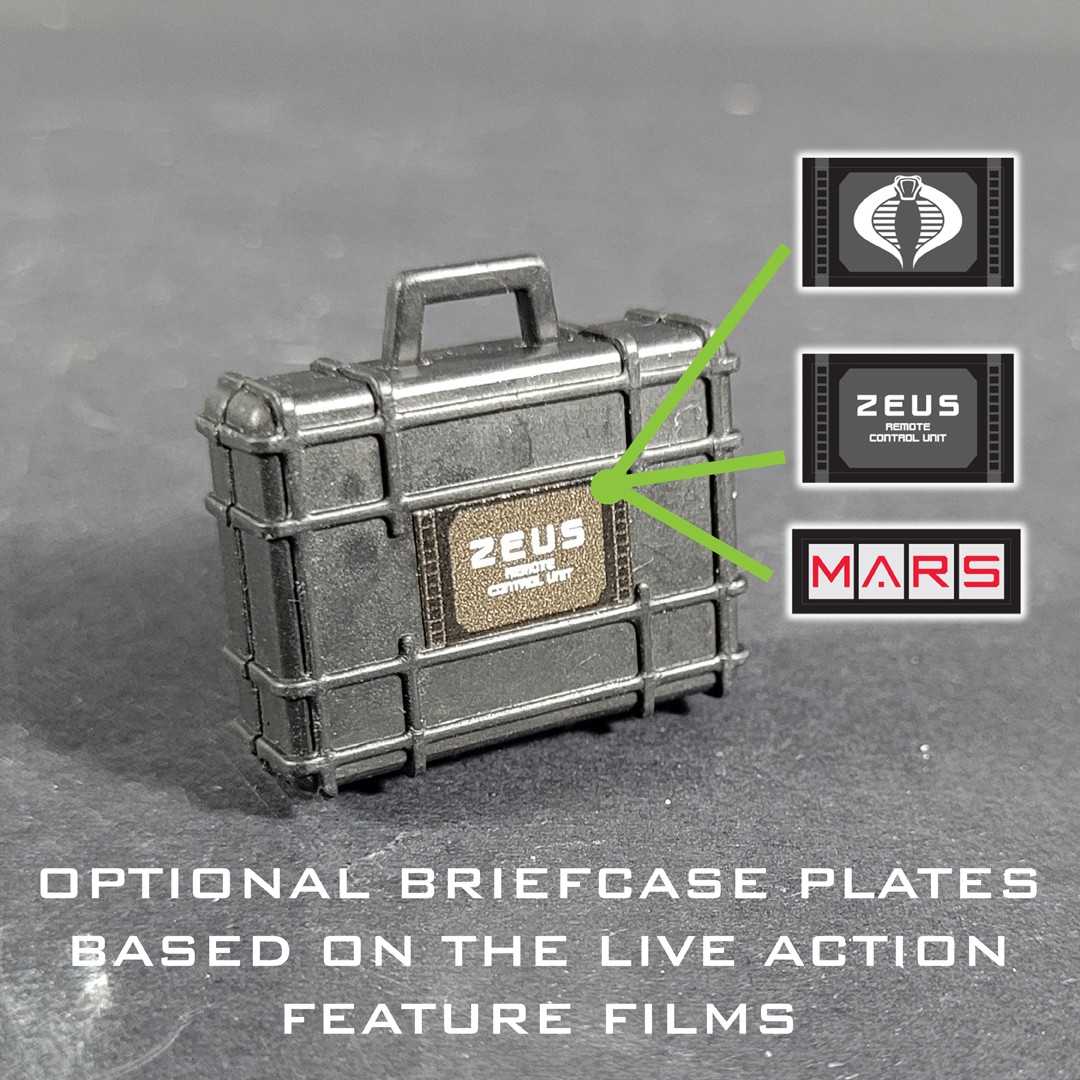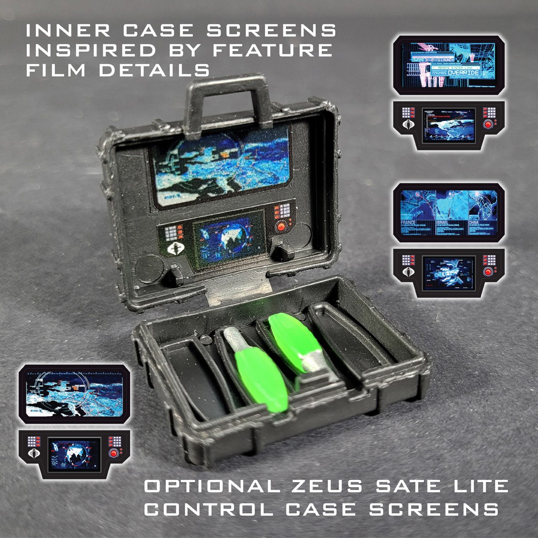Custom set to enhance the 2009 GI JOE Rise of Cobra Nanomites Briefcase accessory. Included as well in this set are alternate screens to turn the Briefcase into a custom version of the ZEUS Satellite control case from the film GI JOE: RETALIATION.
