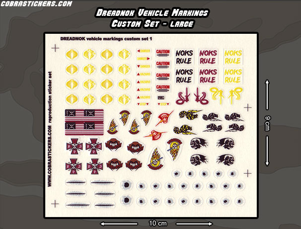 Our large set of Dreadnok themed emblems intended for vehicle use. Printed on clear media
