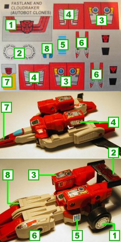 Labels for Autobot Clones Fastlane and Cloudraker