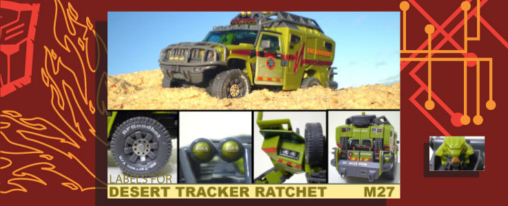 Labels for the 2009 voyager class Revenge of the Fallen Desert Tracker Ratchet.