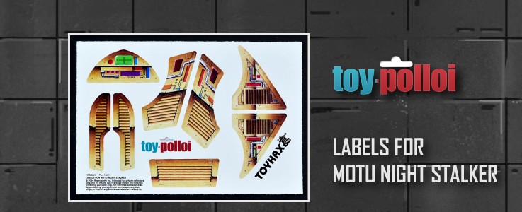 Labels for Masters of the Universe Night Stalker 81-88. These stickers are all pre-cut, no scissors required. Professionally printed on vinyl. Used with permission and in partnership with Toy Polloi.