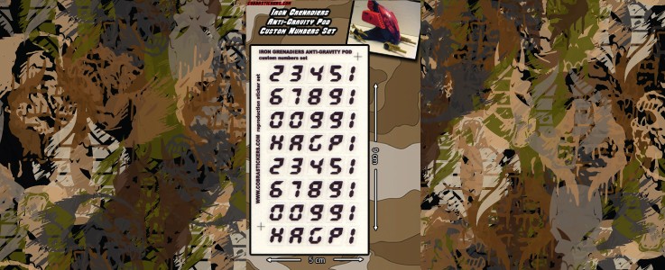 Custom number stickers for the 1988 Iron Grenadiers Anti-Gravity Pod.