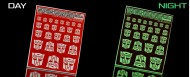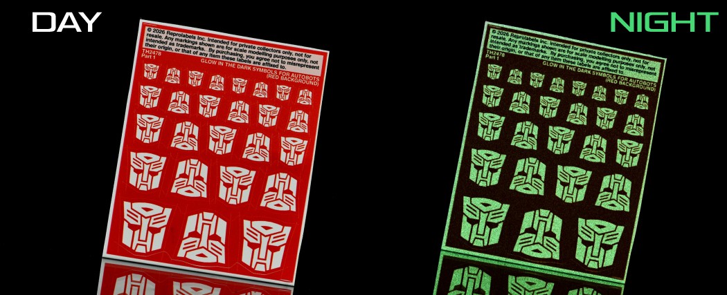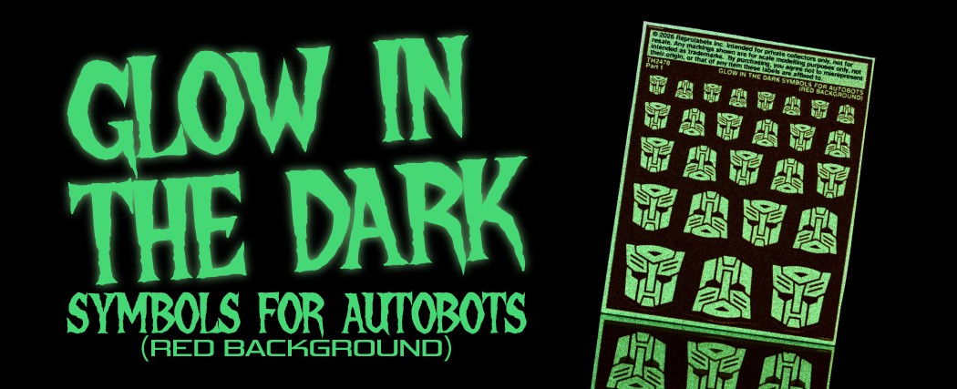 Glow in the dark symbols for Autobots, red background