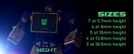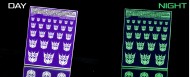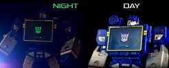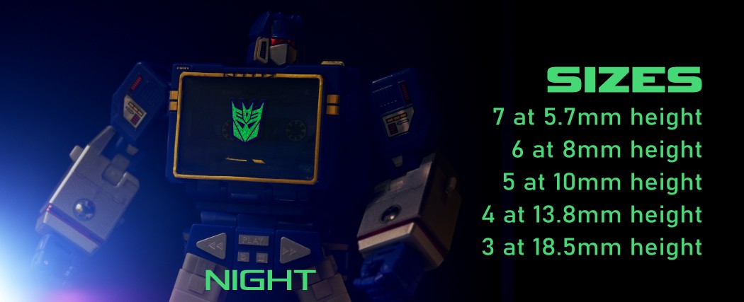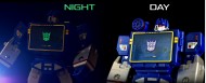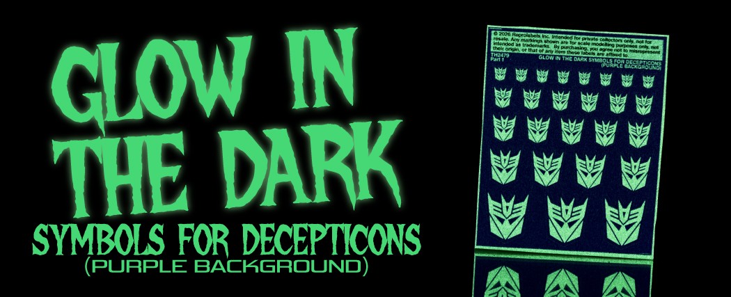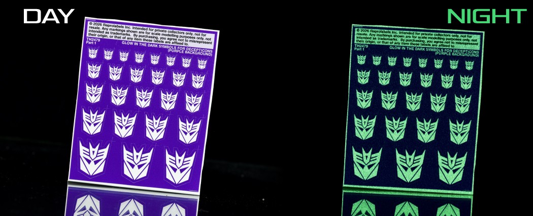 Glow in the dark symbols for Decepticons, purple background