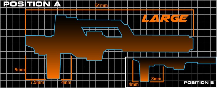 *Please check schematic carefully for measurements to make sure this weapon will fit your intended figure. Schematic shows only one post option.